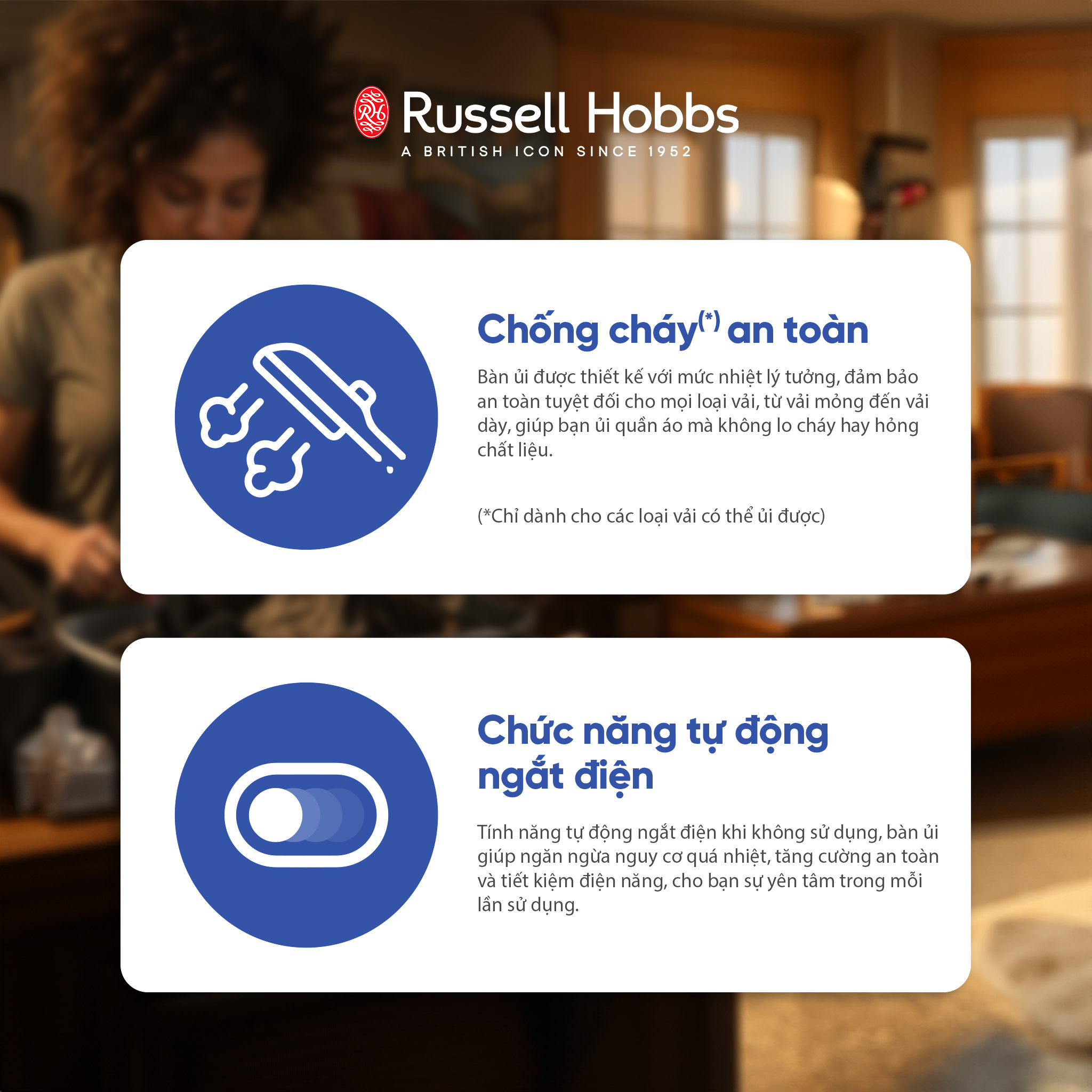 Thiết kế nhẹ nhàng và dễ sử dụng Với trọng lượng chỉ 1,273 kg và thiết kế gọn nhẹ, bàn ủi Russell Hobbs dễ dàng cầm nắm và di chuyển, giúp bạn ủi quần áo