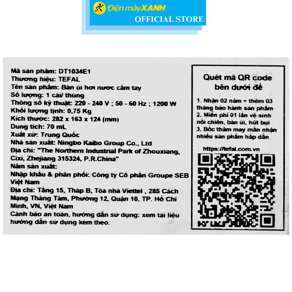 ✨Bàn ủi hơi nước cầm tay Tefal DT1034E1 1200W - Hàng Chính Hãng