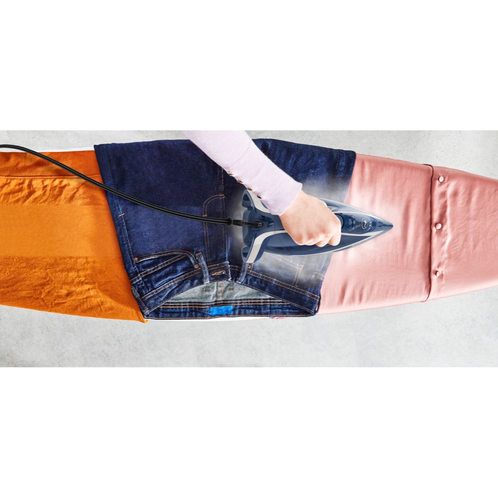Hơi phun tăng cường lên tới 250 g giúp làm phẳng cả những nếp nhăn cứng đầu: Thâm nhập sâu hơn vào cấu trúc vải để loại bỏ ngay cả những nếp nhăn cứng đầu.