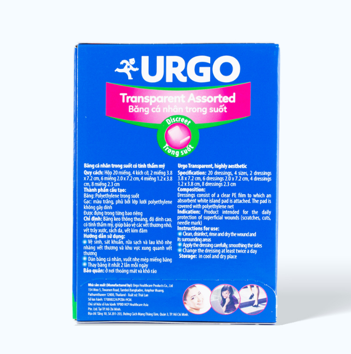 ✨Băng cá nhân trong suốt URGO Transparent Assorted bảo vệ vết thương nhỏ 4 size (Hộp 20 miếng)