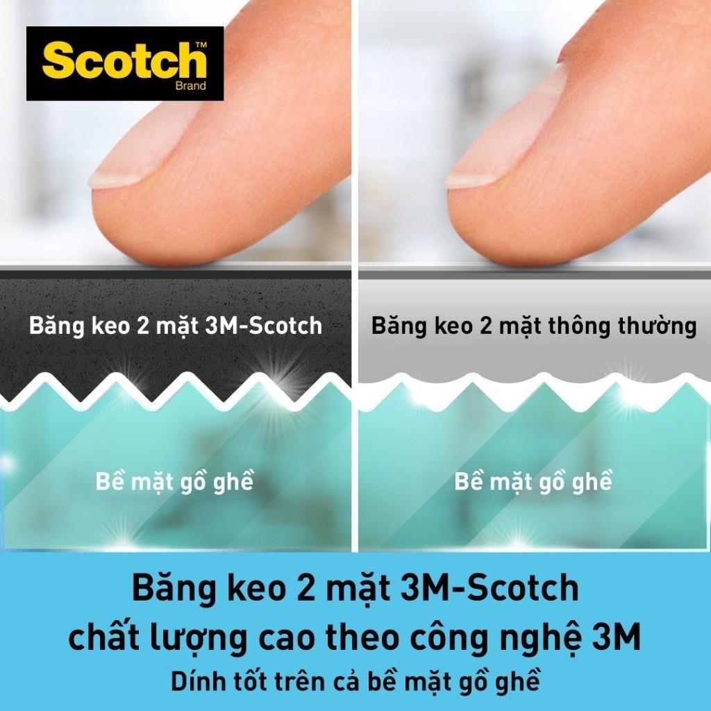 - Băng keo 2 mặt chất lượng cao 3m, dính đều trên cả bề mặt cong
