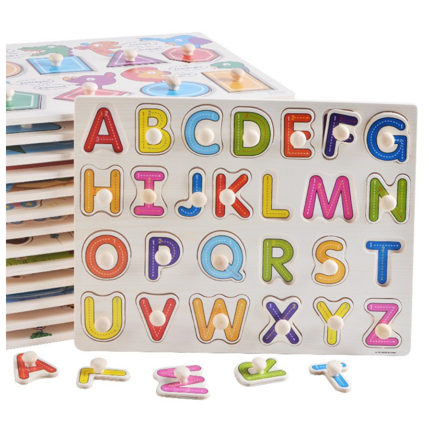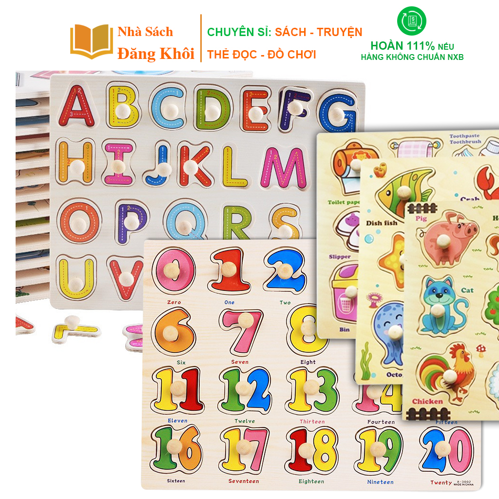✨Bảng núm gỗ nhiều chủ đề, bảng ghép hình núm gỗ động vật, chữ cái, số giáo dục sớm phát triển trí thông minh