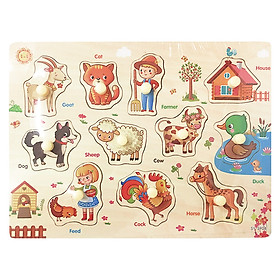 ✨Bảng Tranh Ghép Tiếng Anh Có Núm Chủ Đề Động Vật - Đồ Chơi Giáo Dục