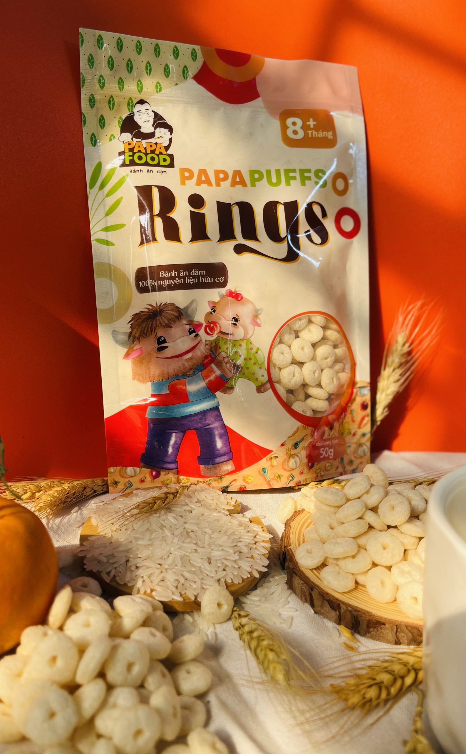 ✨Bánh ăn dặm PAPAFOOD PAPAPUFFS RINGS - 100% Nguyên Liệu Hữu Cơ - Gói 50G