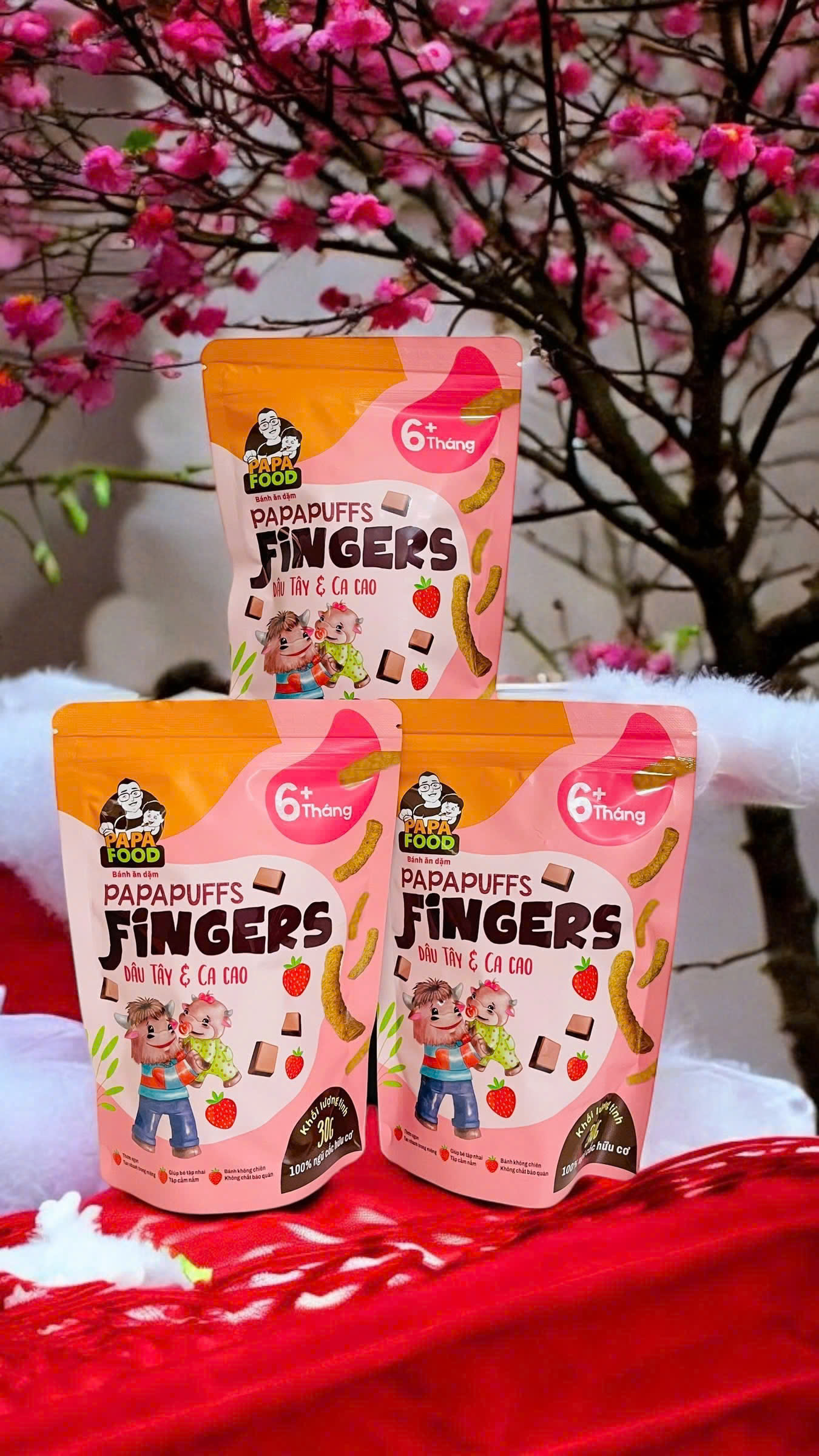 1. Tên sản phẩm: Bánh ăn dặm PAPAPUFFS FINGERS - BÍ ĐỎ VÀ KHOAI LANG TÍM . 2. Thành phần: Được sản xuất từ 100% Nguyên Liệu Hữu Cơ - Gồm gạo lứt hữu cơ,