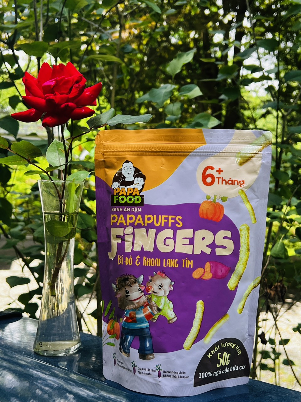 1. Tên sản phẩm: Bánh ăn dặm PAPAPUFFS FINGERS - BÍ ĐỎ VÀ KHOAI LANG TÍM . 2. Thành phần: Được sản xuất từ 100% Nguyên Liệu Hữu Cơ - Gồm gạo lứt hữu cơ,