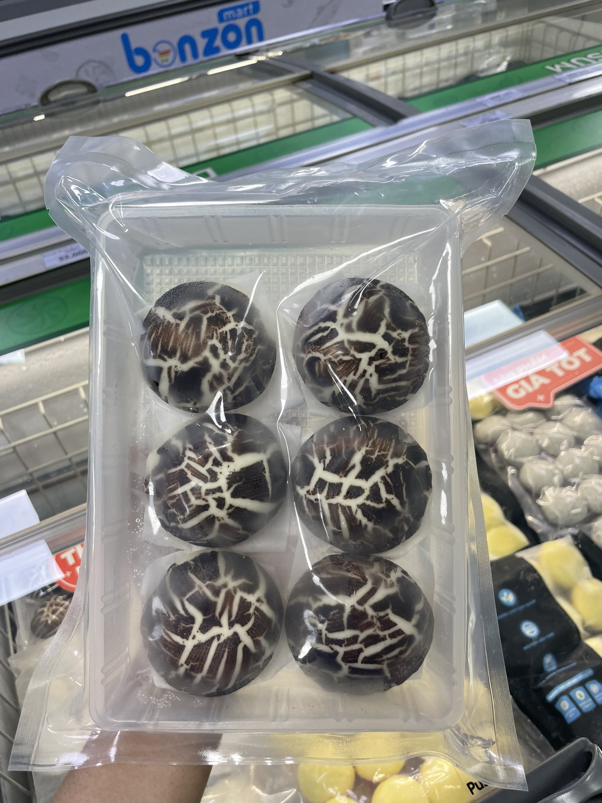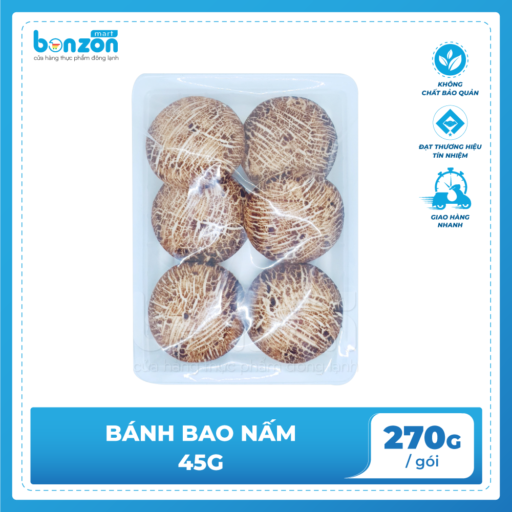 Với sản phẩm tươi sống, trọng lượng thực tế có thể chênh lệch khoảng 10%. ĐỊNH LƯỢNG: 45g/cái x 270 g/gói THÀNH PHẦN: - Vỏ bánh bao, socola, sữa - Nhân: Nấm đùi gà, bột