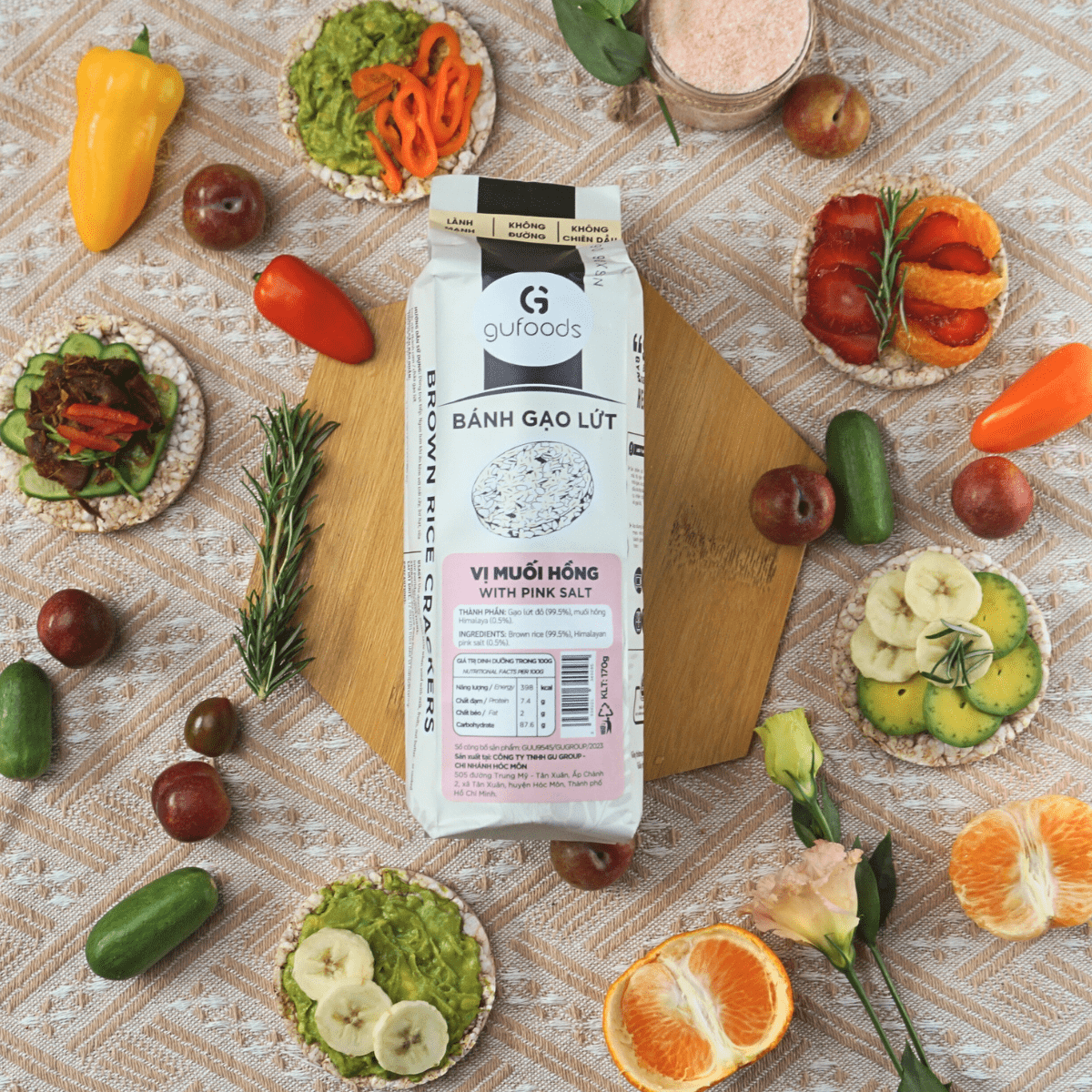 ✨Bánh gạo lứt GUfoods vị Muối hồng - Không chiên dầu, Không đường, Lành mạnh, Phù hợp Eat clean, Ăn vặt healthy, Thực dưỡng, Tập gym, Thuần chay