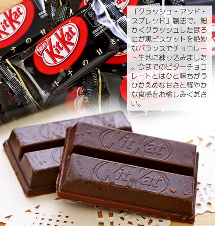 Nếu nhắc đến các loại bánh kẹo ở Nhật thì không thể quên nhắc đến bánh Kitkat. Kitkat có xuất xứ từ thương hiệu của Anh, và bắt đầu bước vào thị trường Nhật Bản từ những năm 70, giờ đã trở thành 1 trong những thương hiệu bánh kẹo rất nổi tiếng ở Nhật, biến Nhật Bản thành 1 trong những thị trường lớn thứ 2 của Kitkat trên thế giới (chỉ sau Anh). Bánh KitKat là một trong những loại bánh kẹo được ưa thích ở Nhật Bản, loại bánh thể hiện cho sự may mắn và thành công (KitKat đọc trong tiếng Nhật giống chữ Kitto Katsu, có nghĩa là chắc chắn thành công, vốn là 1 thành ngữ may mắn trong tiếng Nhật). Đây là lọai bánh xốp được phủ lớp CHOCOLATE độc đáo, thơm ngon, bổ dưỡng. Các bạn hoàn toàn yên tâm về chất lượng. Bánh Kitkat là loại bánh dạng xốp được phủ 1 lớp chocolate, bánh mang hương vị chocolate thơm ngon độc đáo, đặc trưng của Nhật. Vị ngọt ngọt,thơm thơm ngậy ngậy. Loại bánh này được nhiều bạn trẻ ưa chuộng. Bánh Kitkat của Nhật không chỉ là loại bánh kẹo ăn thường ngày mà còn có nhiều lợi ích khác. Bánh Kitkat có thể tăng khả năng kháng khuẩn của cơ thể, ngăn ngừa căn bệnh ung thư nguy giảm Cholesterol và hỗ trợ bệnh tim mạch.