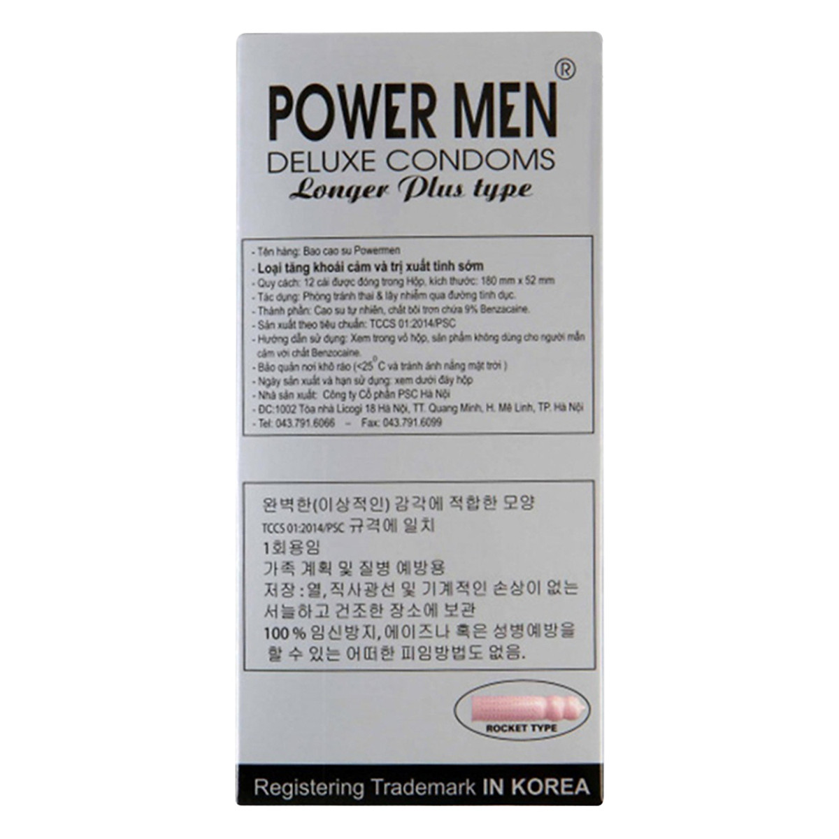 - Xuất xứ: Sản xuất tại Hàn Quốc, đóng gói ở Việt Nam - Đơn vị nhập khẩu: Công ty cổ phần PSC Hà Nội Bao cao su Powermen chính hãng Đặc Điểm Nổi Bật Của Bao Cao Su Powermen Longer Plus Type