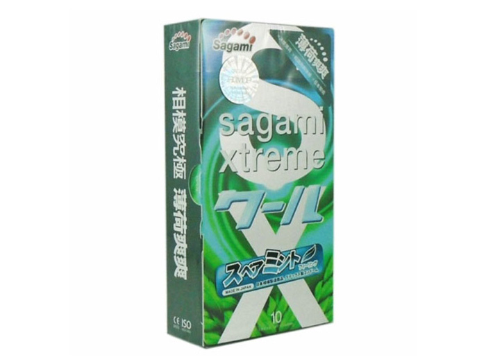 Bao cao su Bạc hà Sagami XTreme Spearmint 0.05mm siêu mỏng kéo dài thời gian (10 bao/hộp)