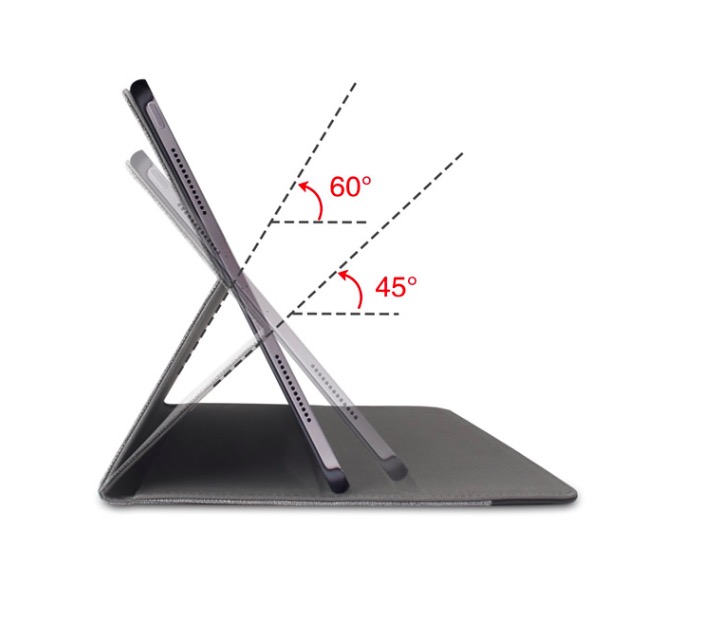 Bao da Canvas cho iPad Pro 12.9 2018 chính hãng MUTURAL được làm từ chất liệu da tổng hợp cao cấp, thiết kế kiểu dựng ngang như quyển sổ. Mặt trước bao da được thiết kế dạng vân vải thời trang, kèm chi tiết da PU mịn tinh tế và đẹp mắt. Phía trong được lót lớp nỉ giúp tránh trầy xước cho màn hình máy, có 2 rãnh để giữ cho màn hình máy ở góc 45º và 60º một cách chắc chắn. Bao da có phần lưng bằng nhựa PC cao cấp dày 3mm ôm sát máy, giúp bảo vệ máy tốt hơn khi va đập. Bao da Canvas cho iPad Pro 12.9 2018 chính hãng MUTURAL có tính năng smart cover tự tắt, bật máy khi đóng, mở mặt trước.