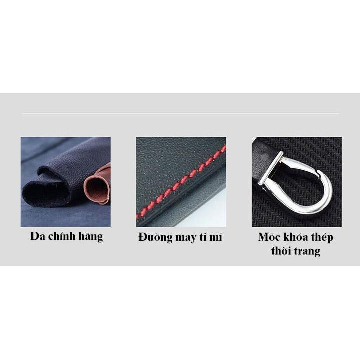 - Chất liệu: Da nappa - Dòng xe sử dụng: TOYOTA - Trọn bộ sản phẩm : bao da chìa khóa và móc khóa - NSX : Việt Nam Chi tiết sản phẩm: + Chất