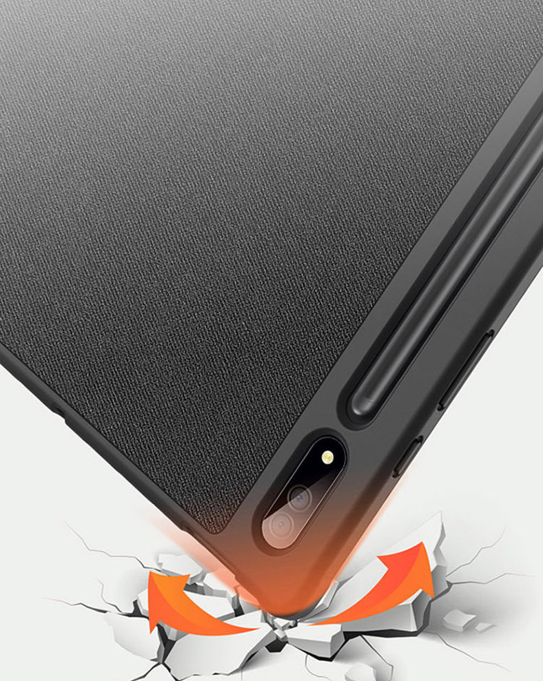 Sản phẩm dành riêng cho Samsung Galaxy Tab S7+ PLUS 12.4 SM-P970. Chất liệu da PU bọc ngoài chắc chắn, dễ dàng lau sạch. Bên trong mặt lưng là nhựa PC cứng chống va đập