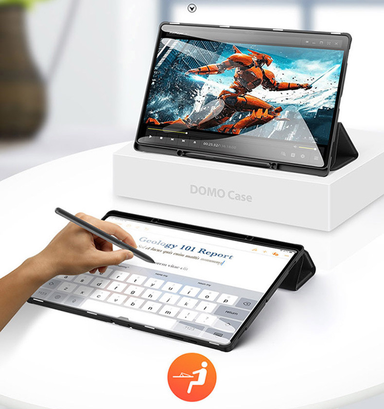 Mua tại TiktokBao da chính hãng Dux Ducis Domo có khay đựng bút là thiết kế mới của hãng Dux Ducis với vẻ đẹp thời trang cao cấp cùng tính năng tiện dụng, an toàn bảo vệ toàn diện cho máy. Bao da Dux Ducis Domo Samsung Tab rất đáng sở hữu bởi: Chất liệu nhựa TPU và vải độc đáo, lạ mắt, thân thiện với môi trường. Cảm biến thông minh tự động tắt mở khi đóng mở nắp bao da giúp tiết kiệm pin triệt để. Phần lưng bao da có khay đựng bút chính hãng Dux Ducis Domo được thiết kế những ô tổ ong giúp tản nhiệt tốt, không nóng máy. Dựng máy nhiều tư thế Mẫu bao da có nhiều màu sắc.