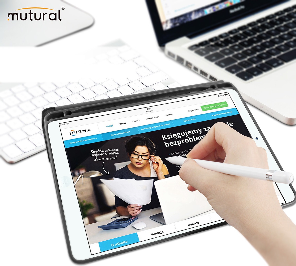 Sản phẩm bao da Ipad 10.2 Mutural có kèm khay đựng bút tiện lợi sử dụng cho Apple Pencil hoặc các loại bút Adonit tương đương giúp bạn sử dụng tiện lợi mang theo Ipad và bút cảm ứng cùng lúc