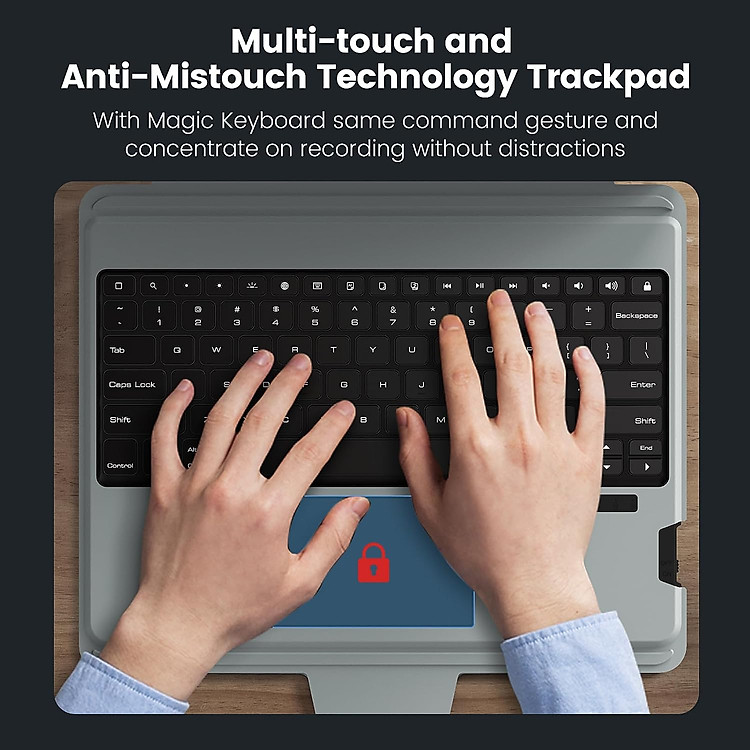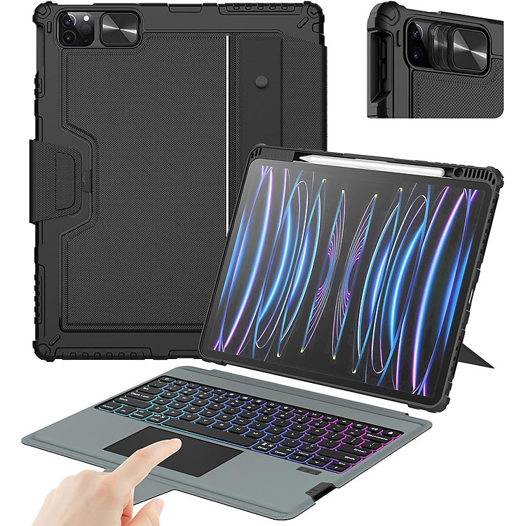 - Chuyển đến cài đặt kết nối Buetooth trên iPad của bạn, tìm Bàn phím Buetooth. Nhấn "FN+N" để BẬT/TẮT bàn di chuột, để tránh chạm nhầm vào bàn di chuột. Bumper Combo Keyboard Case là hộp đựng bàn phím đa chức năng dành riêng cho iPad Pro, có giá đỡ có thể điều chỉnh, bàn phím có thể tháo rời và bàn di chuột giúp thuận tiện khi nhập, xem, đọc và phác thảo. Đồng thời cho phép bạn tận hưởng trải nghiệm hoạt động linh hoạt. Vỏ chống rơi cấp quân sự được sử dụng bao bọc chặt chẽ xung quanh các cạnh của iPad, cung cấp khả năng bảo vệ toàn bộ xung quanh. Thiết kế nắp trượt máy ảnh đã được cấp bằng sáng chế giúp bảo vệ máy ảnh của iPad khỏi mài mòn và trầy xước một cách hiệu quả. Chất liệu vải PU ngắn gọn và tinh tế hòa quyện với tính thẩm mỹ của iPad, một sự tích hợp hoàn hảo của nghệ thuật và công nghệ. [Bàn phím có đèn nền & Bàn di chuột công nghệ chống chạm nhầm] Vỏ iPad với bàn phím có đèn nền 7 màu và 3 mức điều chỉnh độ sáng, bạn có thể dễ dàng sử dụng iPad ngay cả trong môi trường tối. Yên tĩnh và thoải mái khi gõ và bàn di chuột có độ nhạy cao tích hợp để cuộn, vuốt, Với bàn di chuột công nghệ chống chạm nhầm, bạn có thể tạm biệt sự phiền nhiễu của con trỏ khi gõ phím. [Tự động tắt/mở và pin dung lượng cao] Sau 2-3 giờ sạc đầy, vỏ bàn phím iPad ở chế độ chờ trong 180 ngày. Khi bạn đóng hộp đựng bàn phím iPad 10 phút không hoạt động, bàn phím sẽ ở chế độ ngủ.