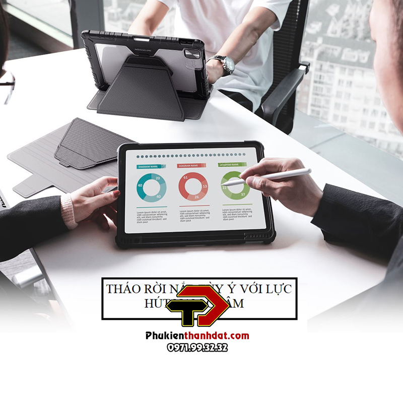 Bao da xoay 360 độ cho chính hãng Nillkin Bumper SnapSafe có ngăn đựng bút được làm bằng TPU, PC và PU vật liệu, khuôn bằng cách phun toàn bộ với thiết kế hình học, giúp bảo vệ iPad của bạn gấp đôi.