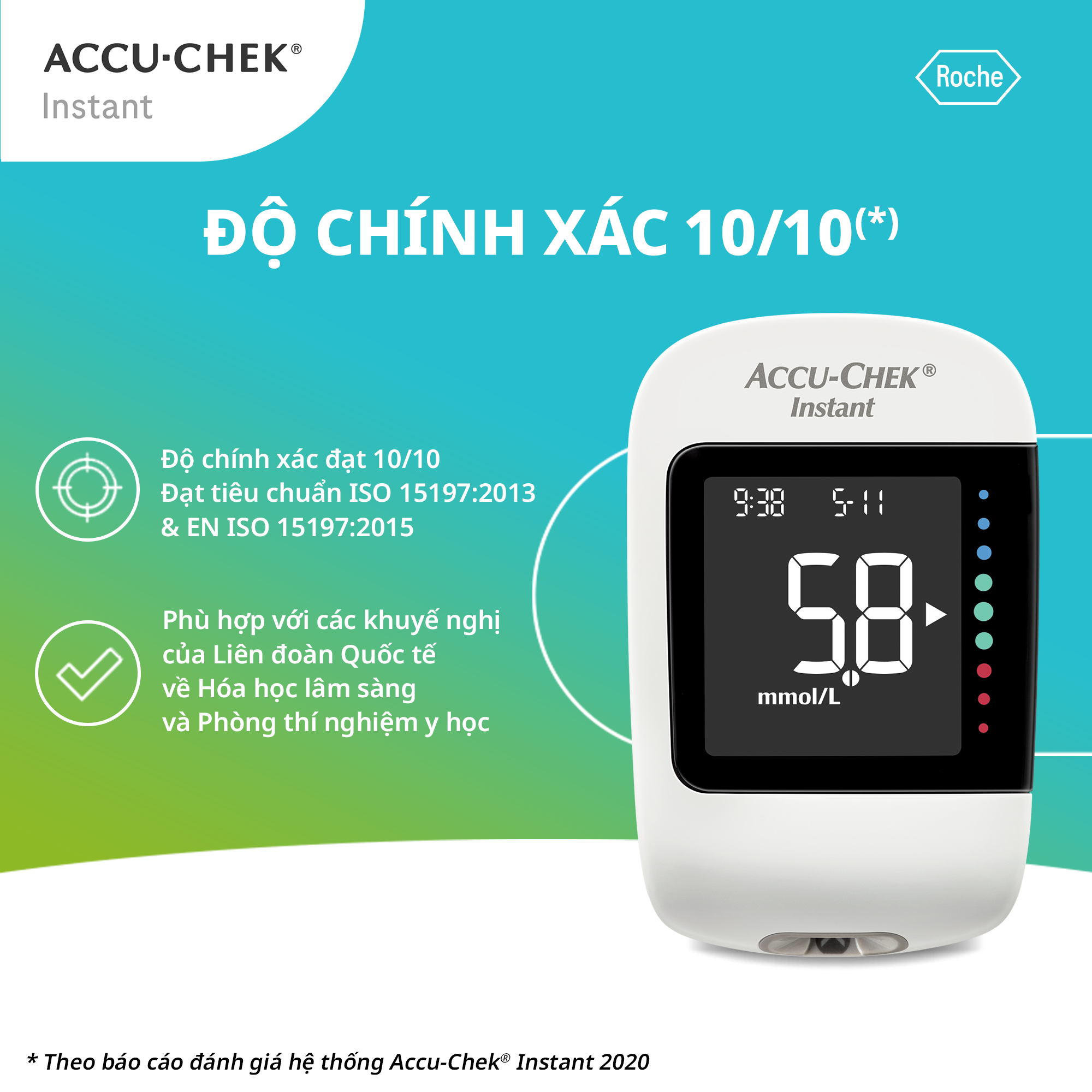 - Độ chính xác đáp ứng và vượt tiêu chuẩn ISO 15197:2013 và EN ISO 15197:2015