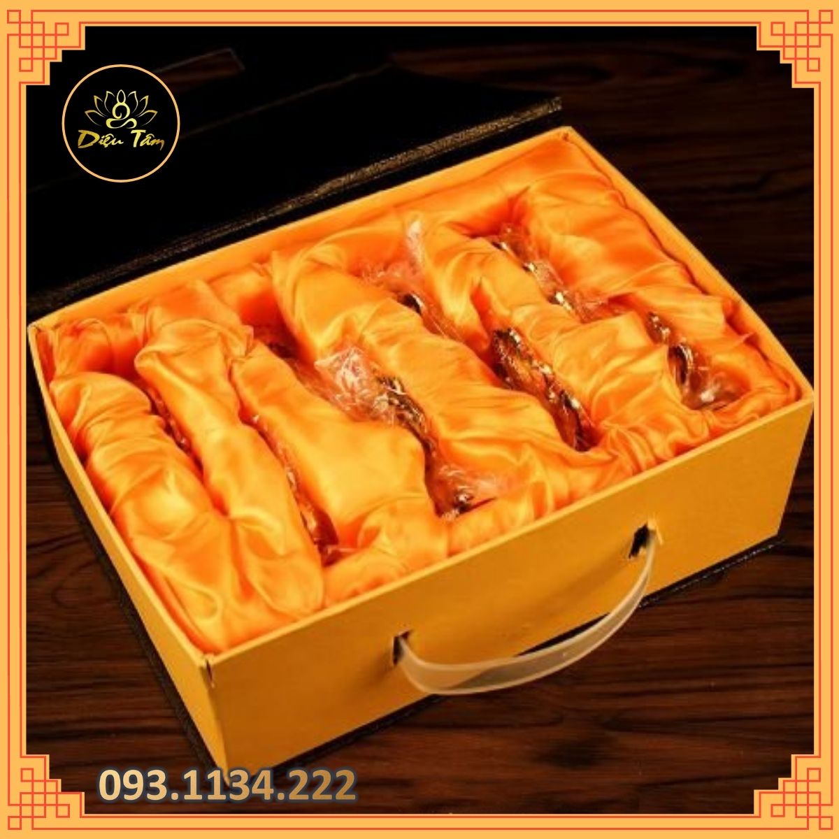 Thông Tin sản phẩm: Bát bảo cát tường -Kích thước (D x R x C): size nhỏ: 9.8cm x 6cm x 3.8cm; size to: 17.8cm x 6cm x 3.8cm -Chất liệu: Hợp kim đồng -Ý nghĩa: Bát Bảo Cát Tường là biểu tượng mang ý nghĩa của sự gia trì hoàn hảo, may mắn và phúc lành. Tám pháp khí đại diện cho những sức mạnh tâm linh khác nhau, mang đến cho con người những niềm tin trong cuộc sống, sự hạnh phúc và an lạc. Bát Bảo Cát Tường được coi như trí tuệ bản lai của Đức Phật, là hóa thân của Đức Phật trong những biểu tượng cát tường may mắn để độ trì lợi ích cho chúng sanh.