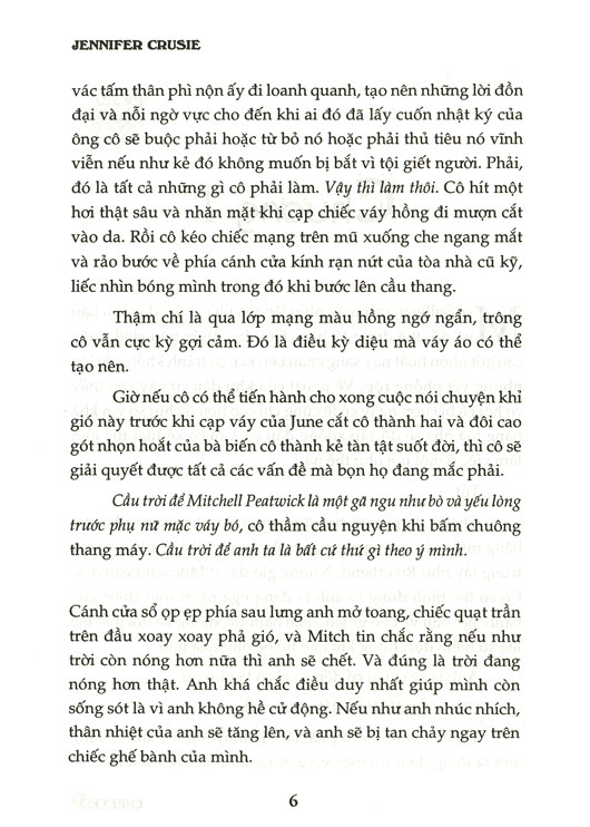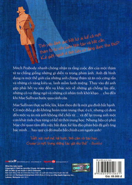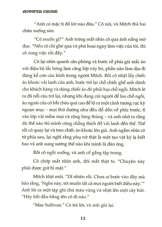 Jennifer Crusie (sinh năm 1949) là bút danh của nhà văn Jennifer Smith, một tác giả dòng tiểu thuyết lãng mạn bán chạy và dành nhiều giải thưởng. Bà đã viết được hơn 15 cuốn tiểu thuyết, đã được xuất bản ở hơn 20 nước trên thế giới.