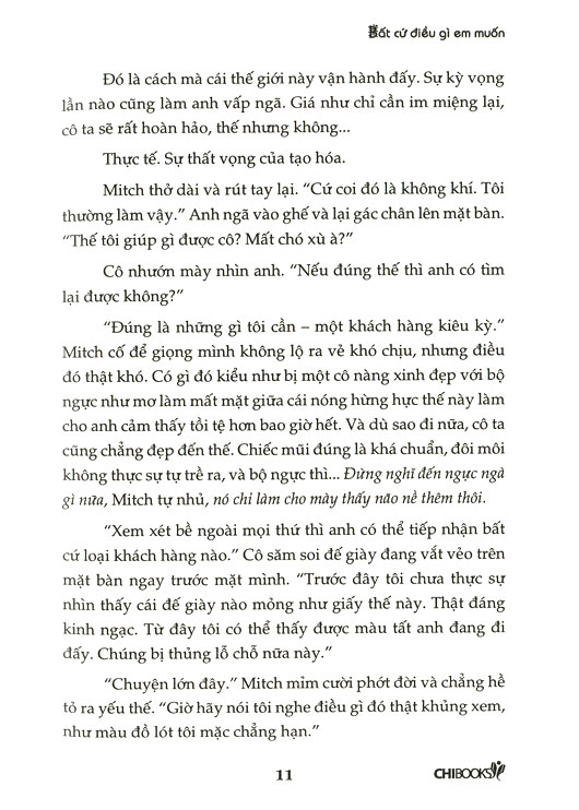 Mitch Peabody nhanh chóng nhận ra rằng cuộc đời của một thám tử tư chẳng giống những gì diễn ra trong phim ảnh chút nào. Từ đầu đến cuối, anh gặp phải hết vụ này đến vụ khác nói về những gã chồng lừa dối, những cô vợ đáng ngờ và những cô nhân tình khờ khạo… cho đến khi cô bước qua cánh cửa.