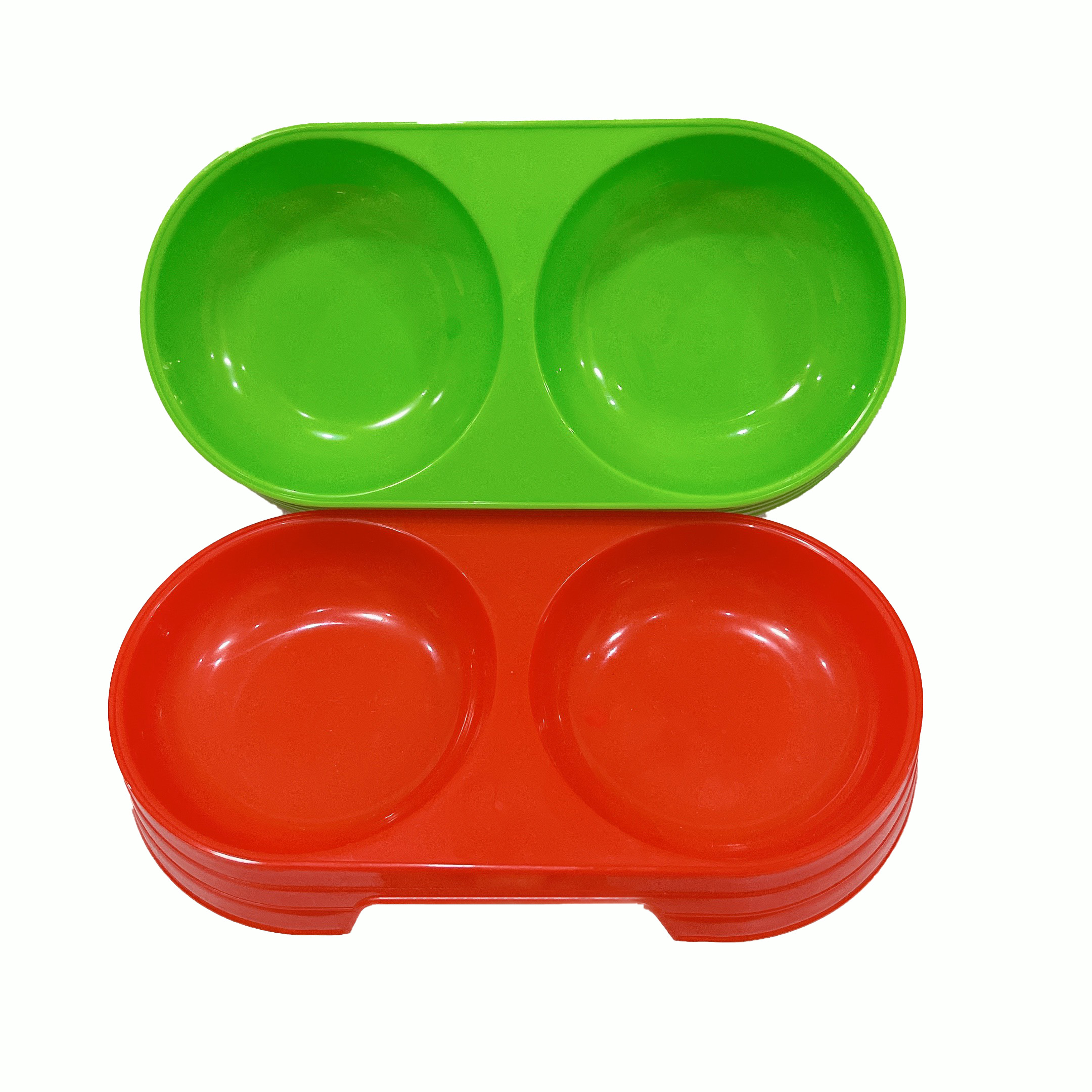 - Bát nhựa đôi cho chó mèo được làm từ chất liệu nhựa cao cấp không gây hại, không làm ảnh hưởng đến chất lượng thức ăn, có nhiều màu sắc bắt mắt giúp cho