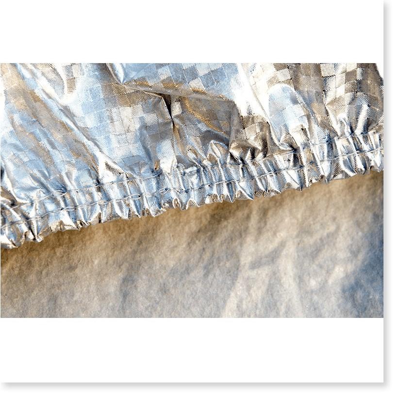 Vải cao cấp 2 mặt dầy dặn, lớp ngoài tráng nhôm cao cấp giúp phản chiếu nắng và cách nhiệt. Lớp trong là lớp nỉ cao cấp chống xước bảo vệ lớp sơn của xe.