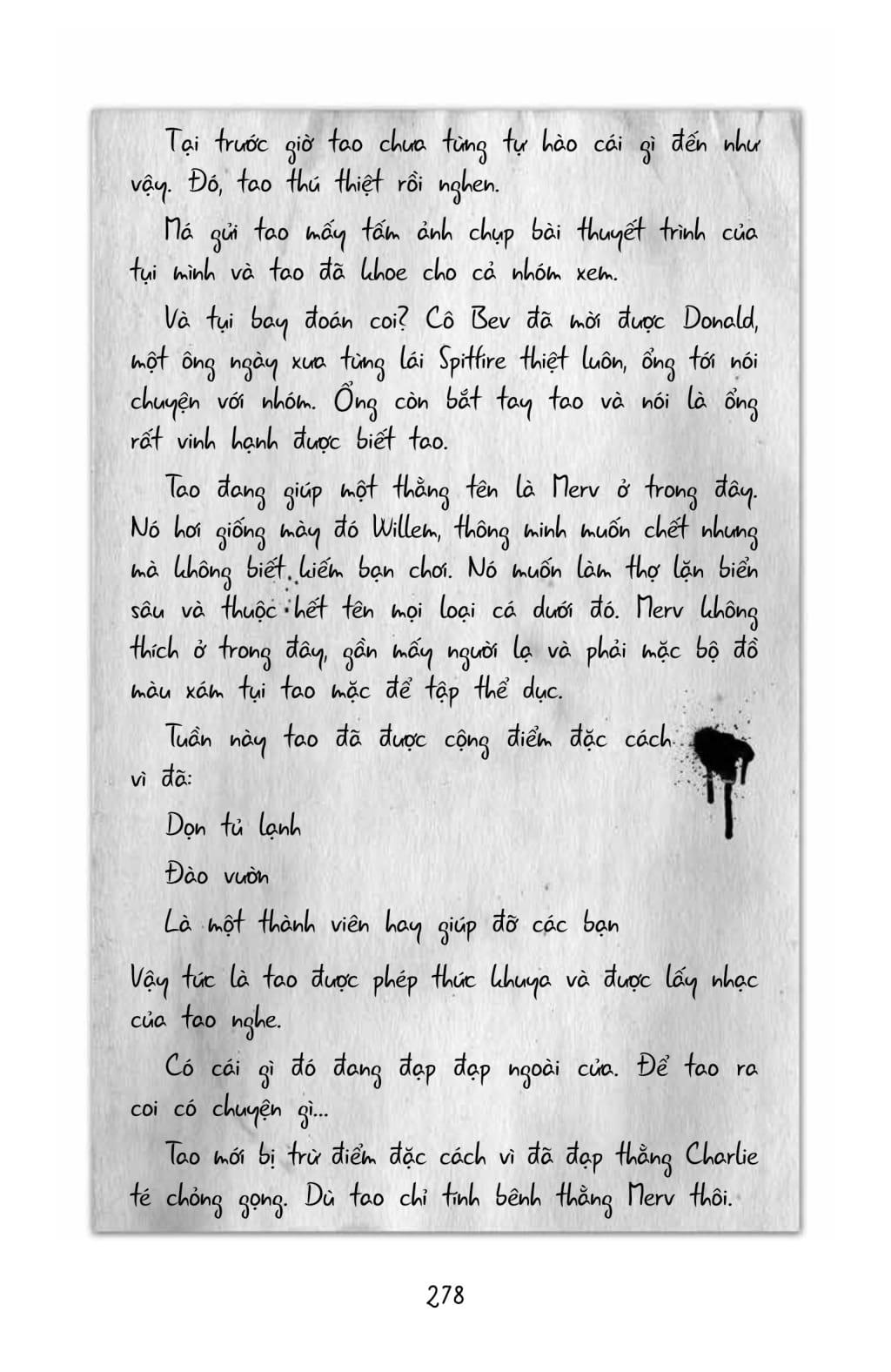 Cầm đầu mấy đứa Giang hồ Phố Beckham trong lớp Willem là thằng Finn. Hai đứa "tà lọt" cho thằng Finn là thằng Laurence và TJ. Ba thằng ôn con này gặp Willem đâu là bắt nạt đó, cái trò thằng Finn khoái nhất là bắt Willem leo lên bàn, leo lên kệ leo lên bất cứ gì và nhảy xuống theo tiếng hô của nó! Nhưng bữa đó thật bá đạo quá quắt, ba thằng dí Willem trèo lên bờ tường bao khuôn viên trường và bắt thằng nhỏ phải nhảy xuống. Cái tường cao thế kia, lại còn găm đầy miểng chai trên bề mặ