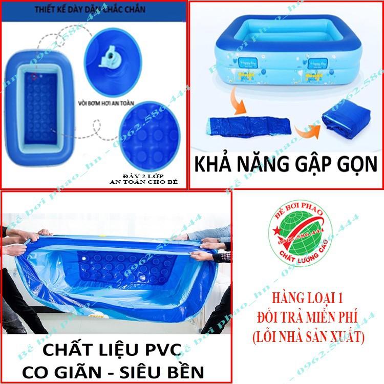 Hồ bơi thiết kế lớn có thể cho 3 bé cùng bơi Chất liệu pvc an toàn Đáy hồ bơm hơi ngồi êm ái Hồ cao 3 tầng
