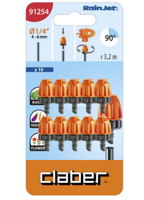 ✨Béc tưới phun mưa Claber micro 90° 91254, hộp 10 cái, nhựa ABS, kết nối ống 4-6mm