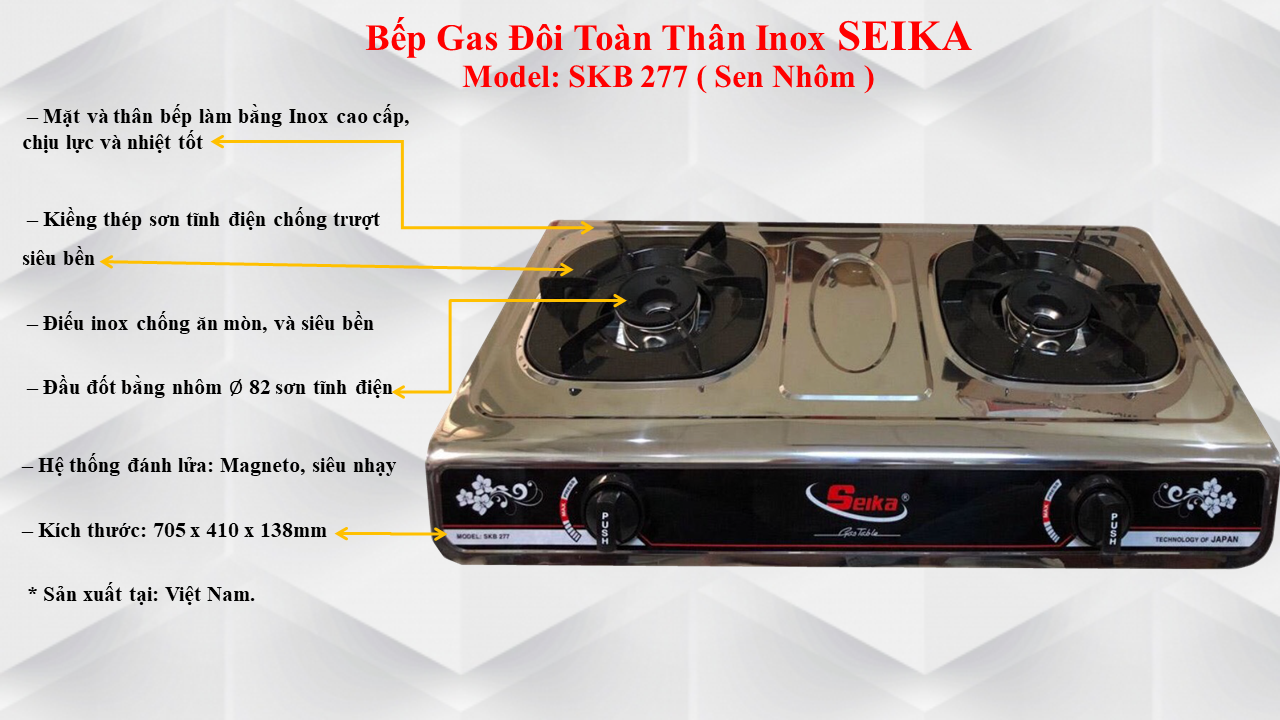 ✨Bếp Gas Đôi Toàn Thân Inox Seika SKB277 - Hàng Chính Hãng