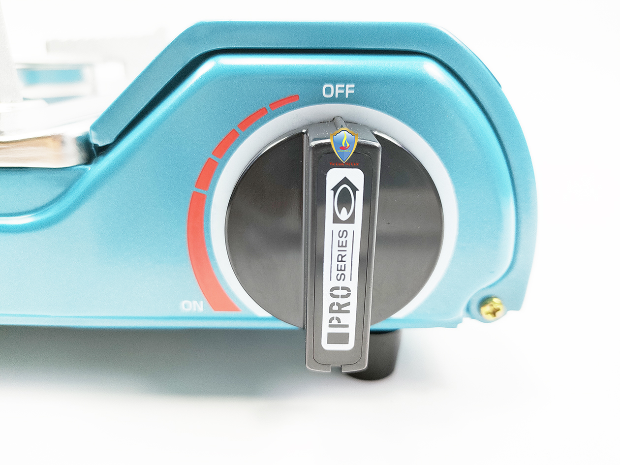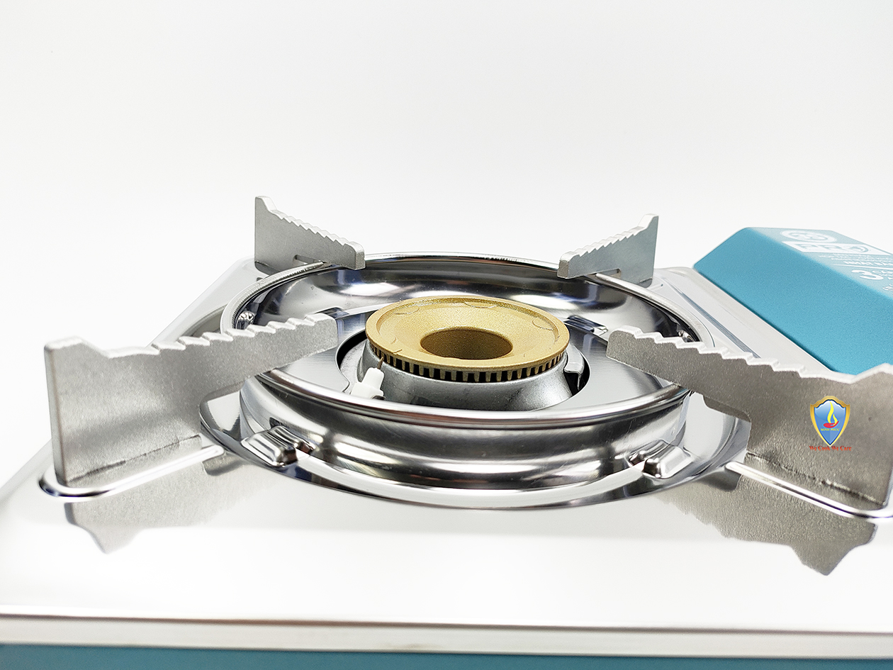Bếp du lịch sử dụng van ngắt gas an toàn tự động Inline Cut. Bếp sử dụng hệ thống đầu đốt theo tiêu chuẩn JIA (Nhật Bản), kết hợp vòng chắn gió, giúp ngọn lửa