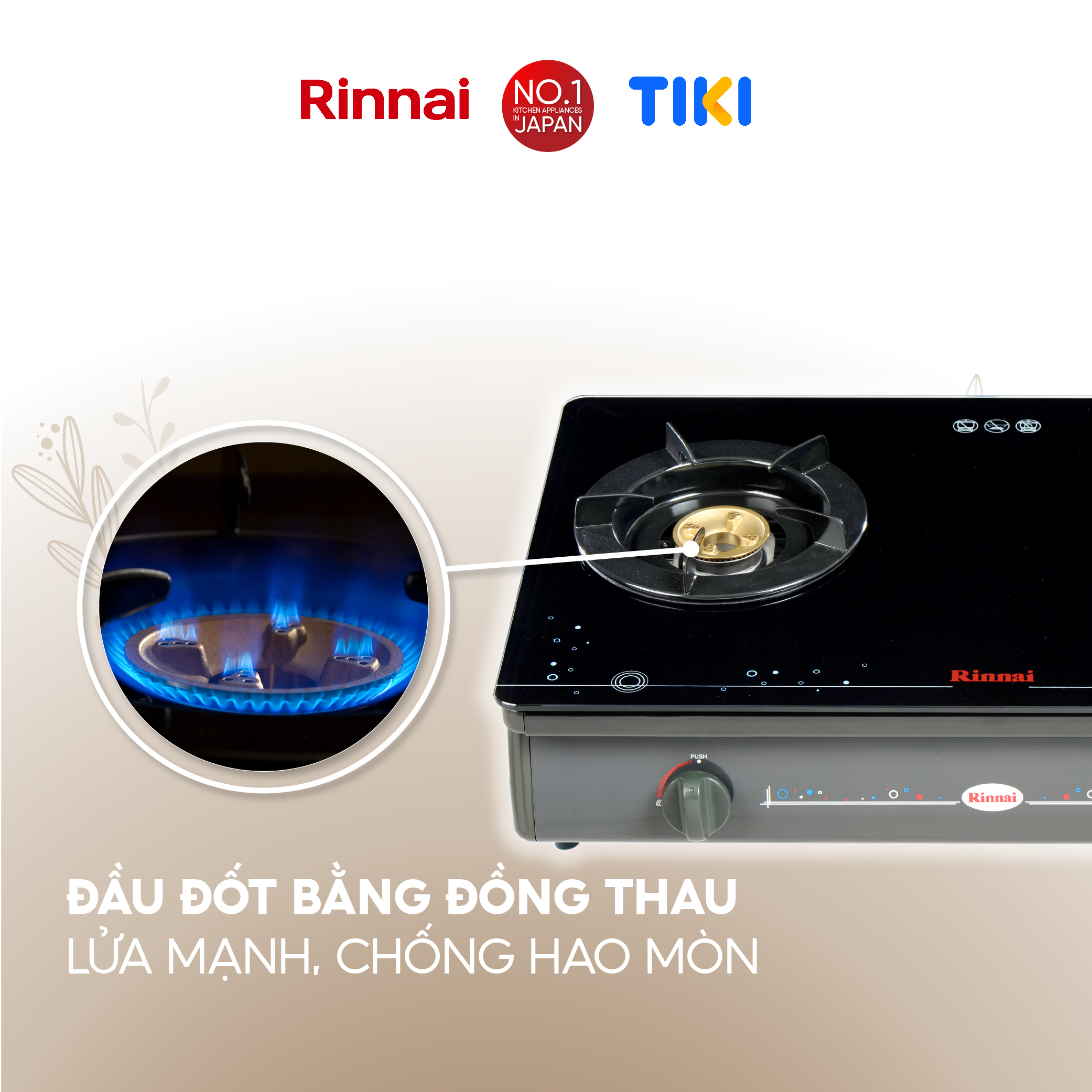 * Mặt kiếng cao cấp chịu lực, chịu nhiệt, thiết kế hoa văn sang trọng; - Thân bếp làm bằng inox chống rỉ sét, cao 60mm; - Núm vặn kiểu Rinnai; - Kiềng thép sơn