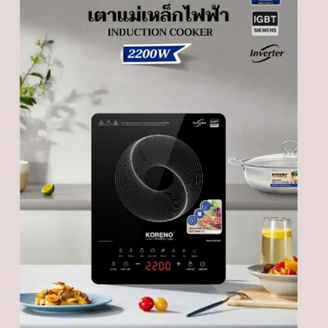 Bếp từ đơn Koreno Thái Lan KN-897 công suất 3200W Inverter kèm nồi lẩu - Zalo 0986 588655