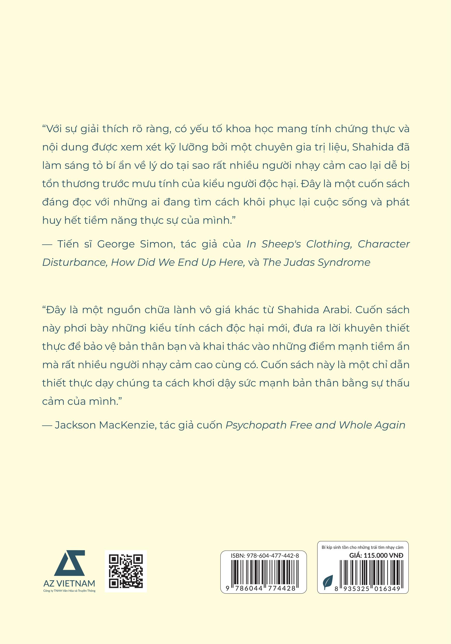Trong cuốn Bí kíp sinh tồn cho những trái tim nhạy cảm (Cẩm nang đối phó với kiểu người độc hại dành cho những người cực kỳ nhạy cảm), bạn sẽ được học các kỹ năng dựa trên bằng chứng của các liệu pháp nhận thức-hành vi (CBT) và liệu pháp hành vi biện chứng (DBT) để giúp bạn nhận ra và ngăn chặn các chiến thuật thao túng phổ biến được sử dụng bởi những người độc hại. Ngoài ra, bạn cũng sẽ biết thêm nhiều bí kíp để bảo vệ bản thân khỏi năm kiểu người độc hại chính.