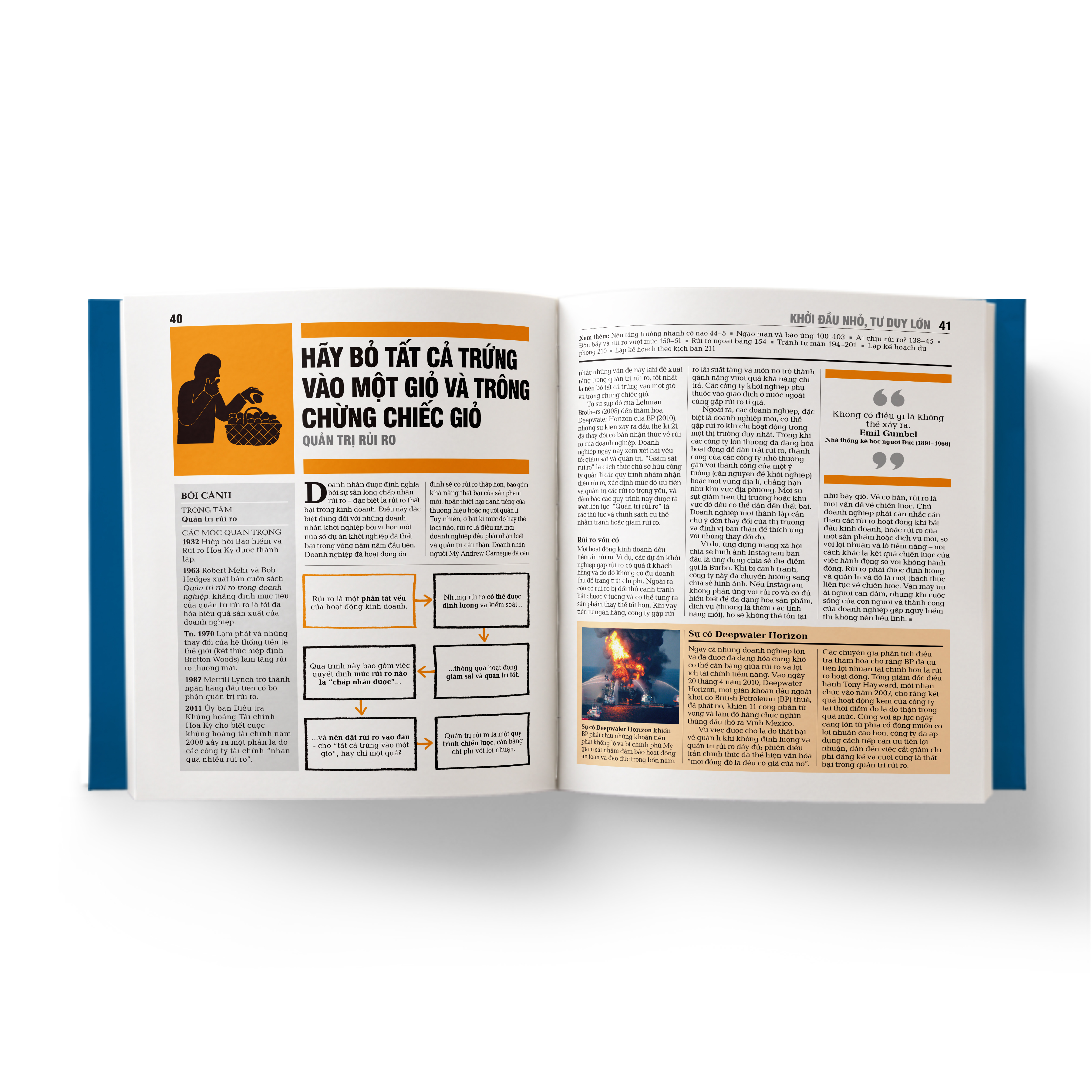 Làm thế nào để xây dựng thương hiệu thành công? Điều gì tạo nên một nhà lãnh đạo giỏi? Vì sao một số doanh nghiệp gặp thất bại trong khi số khác lại phát triển vượt bậc? Trong suốt chiều dài lịch sử, các chuyên gia về kinh doanh đã đúc kết những ý tưởng và giải pháp góp phần định hình thế giới kinh doanh và thương mại như ngày nay. Được viết bằng văn phong đơn giản, Kinh doanh – Khái lược những tư tưởng lớn mở ra những ý tưởng độc đáo, với cách giải thích ngắn gọn, súc tích kèm theo các biểu đồ dễ hiểu và hình minh họa dí dỏm, giúp bạn tiếp cận những kiến thức cốt lõi về kinh doanh và thị trường thế giới.