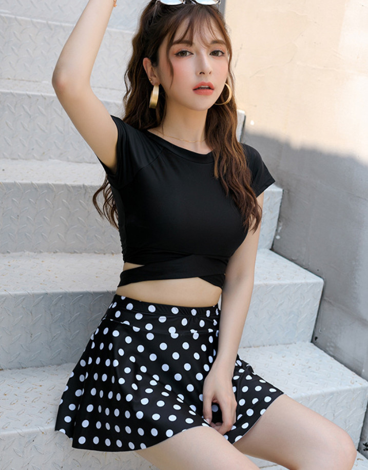 Bộ đồ bơi croptop tay dài phối váy ngắn, trẻ trung, nhẹ nhàng đi biển