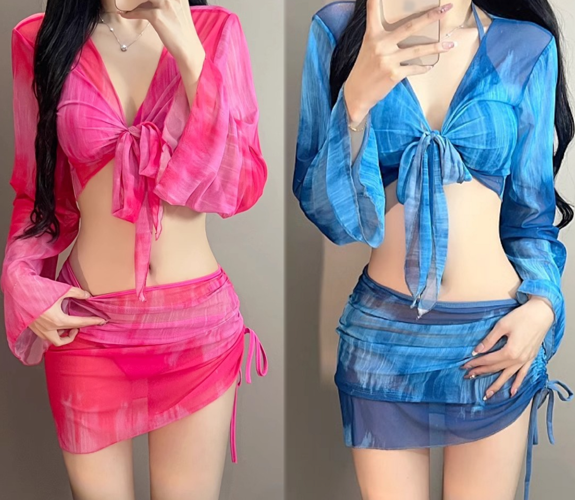 ✨Bikini Loang Màu Set 4 Món Áo Choàng Dài Tay Váy Rút Dây BK004 MayHomes Đồ Bơi Nữ 4 Mảnh