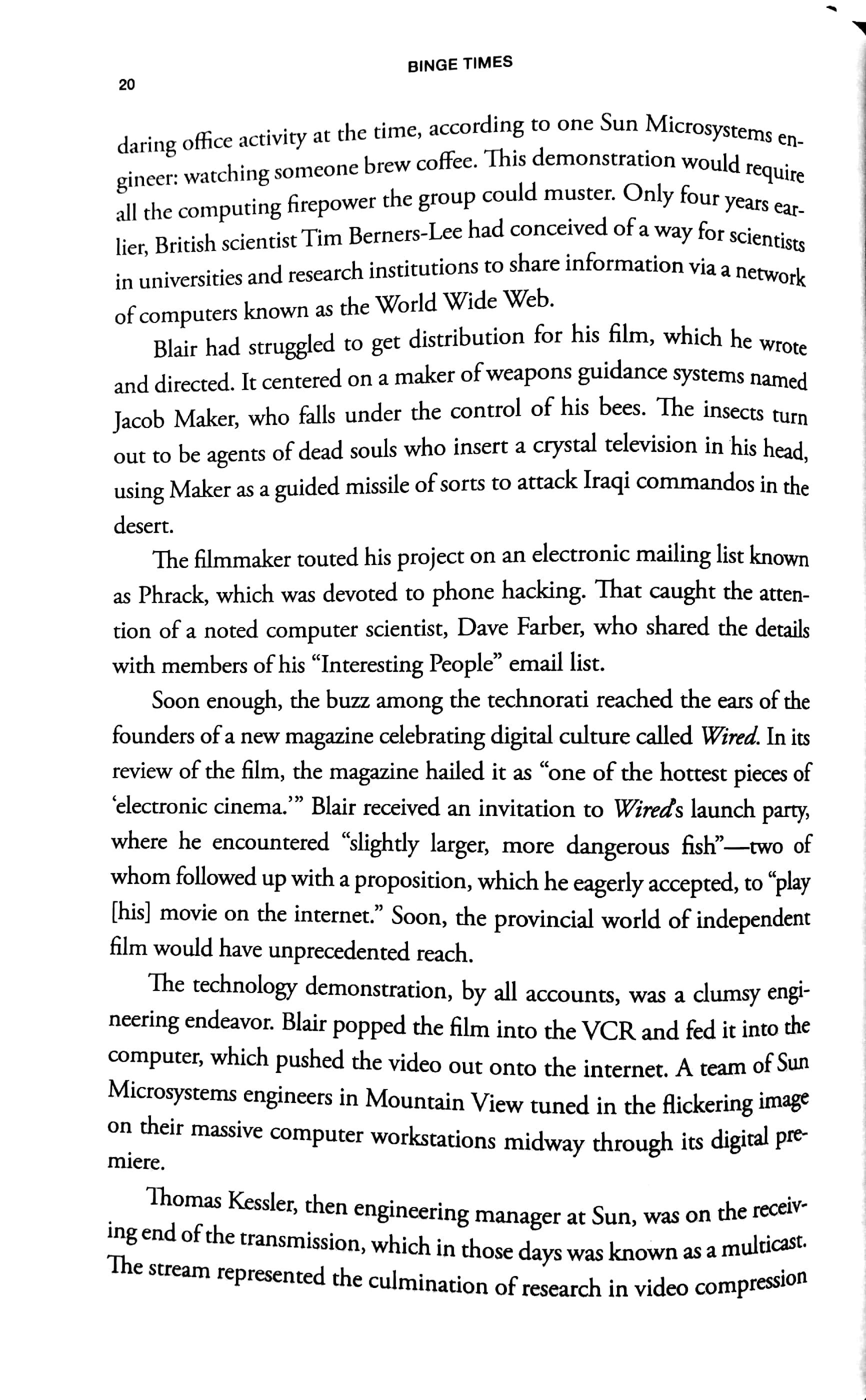The battle for streaming supremacy may end up having more than one winner, but the cost and disruption to decades-old business models have also produced a lot of losers. Binge Times reveals the true costs of the vision quest as companies are turned inside-out and repeatedly redraw their org charts and strategic plans. Stretching from Silicon Valley to Hollywood to Wall Street, it is a mesmerizing, character-rich tale of hubris and ambition, as the fate of a century-old industry hangs in the balance.