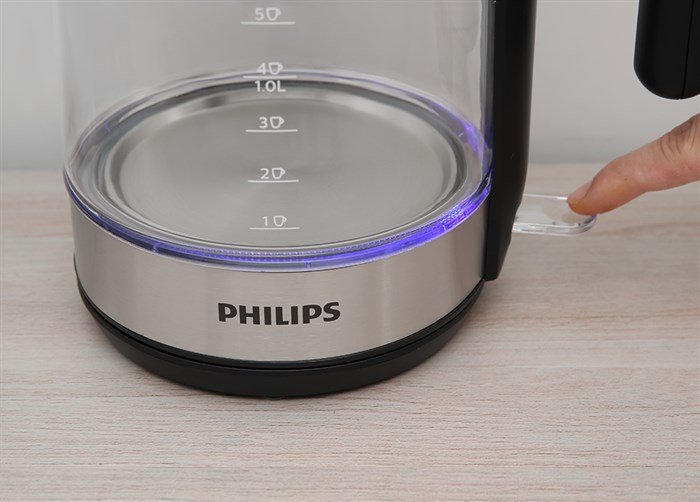 - Đèn báo màu xanh dương Đèn cảm biến trực quan và trang nhã được gắn vào chân đế thủy tinh trong suốt giúp bạn nhận biết bình đun đã hoạt động.