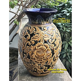 Lọ Lộc Bình Men Rạn Đắp Nổi được làm thủ công bởi bàn tay nghệ sĩ của những nghệ nhân làng gốm Bát Tràng Kích thước: Chiều cao 36cm Phù hợp với những ban thờ