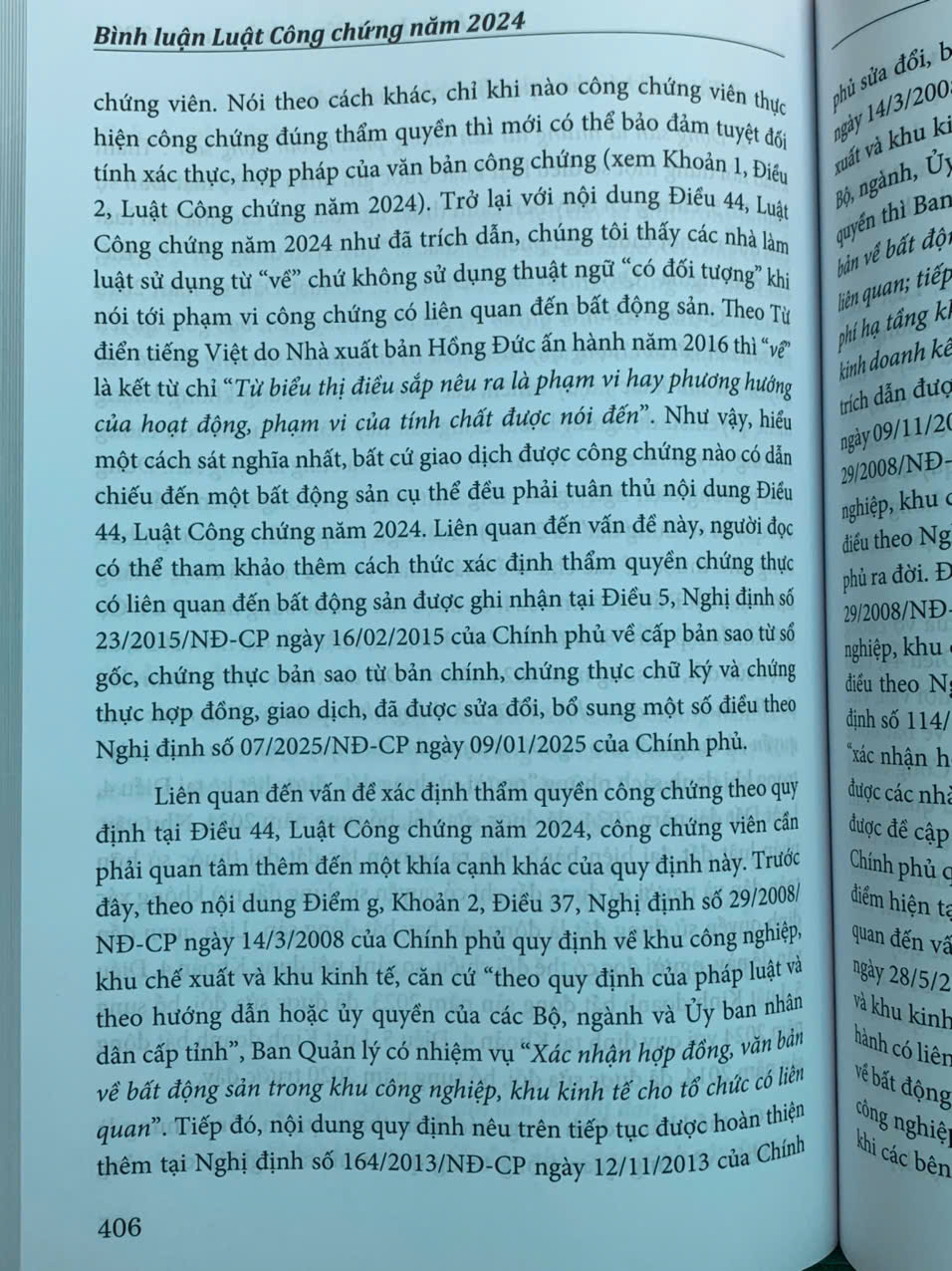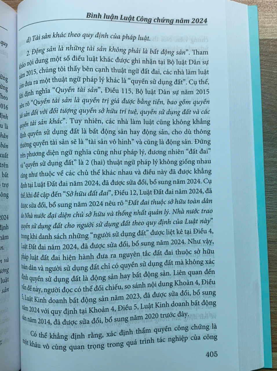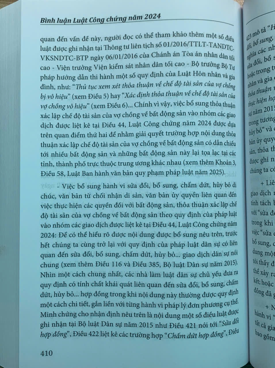 Nhằm cung cấp cho độc giả một góc nhìn toàn cảnh các quy định của Luật Công chứng năm 2024 trước những thay đổi nhanh chóng của thực tiễn cuộc sống cũng như việc sửa đổi, bổ sung rất nhiều đạo luật có liên quan trực tiếp hoặc gián tiếp đến hoạt động này, Nhà xuất bản Tư pháp xuất bản cuốn “Bình luận Luật Công chứng năm 2024”. Dưới nhãn quan của công chứng viên, các tác giả đã phân tích, bình luận một số nội dung của Luật chủ yếu dựa trên kinh nghiệm hành nghề thực tế của bản thân, yêu cầu, đòi hỏi khách quan của cuộc sống được đặt trong tương quan so sánh với nội dung những văn bản quy phạm pháp luật điều chỉnh một số lĩnh vực có liên quan mật thiết đến hoạt động công chứng.