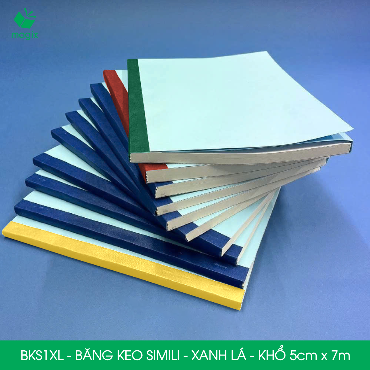 ✨BKS1XL - 3 cuộn băng keo Simili khổ 5cm x 7m - Xanh lá - Băng dính dán gáy sách, đóng cuốn