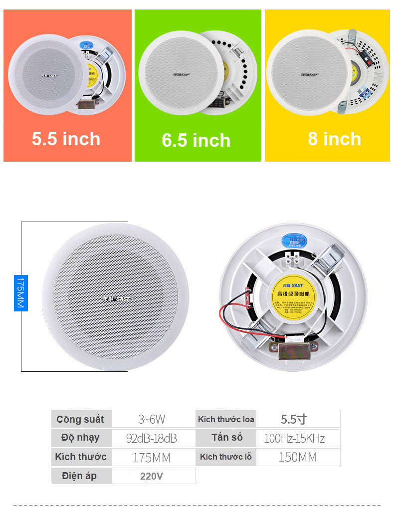 Mua tại TiktokBộ 02 Loa Âm Trần SAST Công Suất 6W Kích Thước 5 inch Mặt Tròn Lưới Mịn PD Loa âm trần SAST có thiết kế đẹp mắt với vỏ loa kim loại hình tròn, tinh tế, màu sắc nhẹ nhàng thích hợp với nhiều không gian nội thất. Loa thường được lắp đặt trên trần nhà hoặc vào hốc tường không gây ảnh hưởng tới vẻ đẹp của kiến trúc căn phòng. Bạn có thể dễ dàng lắp đặt cũng như thiết lập công suất một cách đơn giản và dễ dàng. Loa âm trần CEILING-MOUNTED SPEAKER 801 Loa âm trần phù hợp lắp đặt cho Spa , quán trà sữa , quán café, thẩm mĩ viện , phòng tập gym-yoga , Trường học, biệt thự….