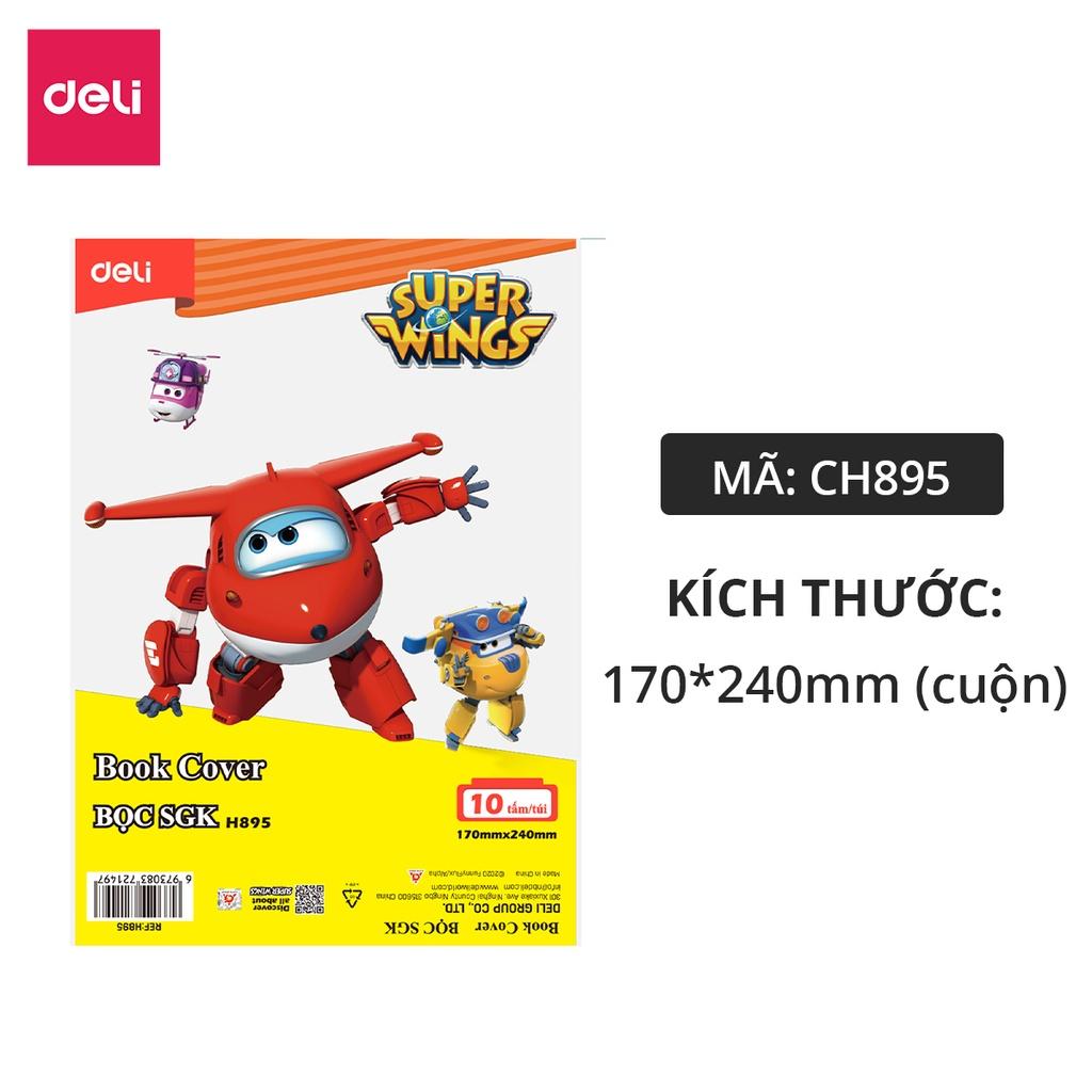 ✨Bộ 10 Bao Bọc Sách SGK Vở Dán Bìa Trong Suốt Chống Nước Book Cover Super Wings Deli - Phù Hơp Cho Học Sinh Văn Phòng