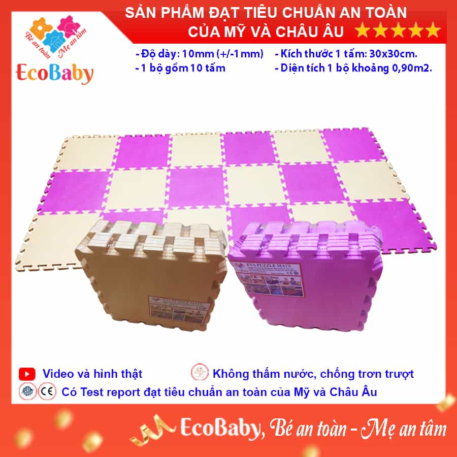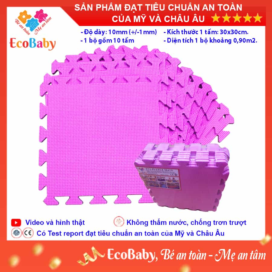 ✨Bộ 10 tấm Thảm xốp cho bé ECOBABY, thảm xốp đạt tiêu chuẩn Mỹ và Châu Âu, độ dày khoảng 1cm, kích thước 1 tấm 30x30cm - Màu trơn