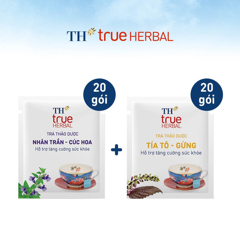 ✨Bộ 2 hộp trà thảo dược TH true HERBAL Nhân trần – Cúc hoa & Trà Tía tô – Gừng (40 gói)