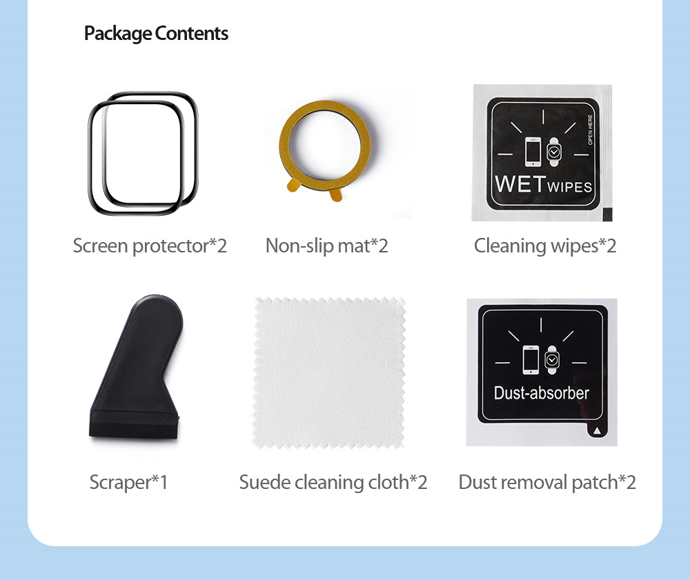 Đặc điểm kỹ thuật: Miếng dán dẻo Apple Watch 42 mm , 46 mm Bộ sản phẩm bao gồm: 1x miếng dán 1x Vải lau khô 1x Vải lau ướt Công dụng của miếng dán