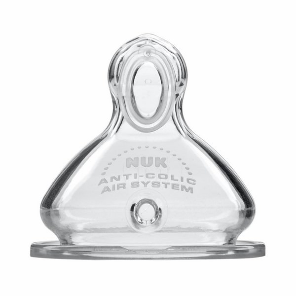 Mua tại Tiktok- Bộ 2 Núm Ti Silicone S1 Nuk NU66055 (Size S) với thiết kế lỗ tiết sữa ở mặt trên, sữa sẽ được đưa lên vòm họng và hòa cùng với enzyme nước bọt trước khi nuốt để trẻ dễ tiêu hóa, tránh bị sặc do sữa đi thẳng vào họng.